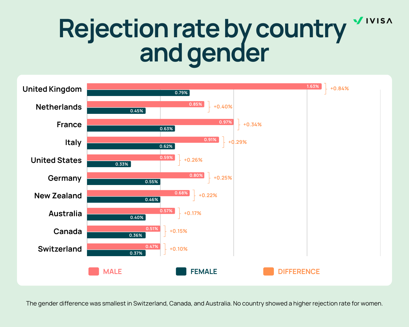Men are 62% more likely to have their travel visa rejected, iVisa's latest data reveals